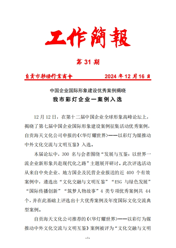 中国企业国际形象建设优秀案例揭晓 我市彩灯企业一案例入选