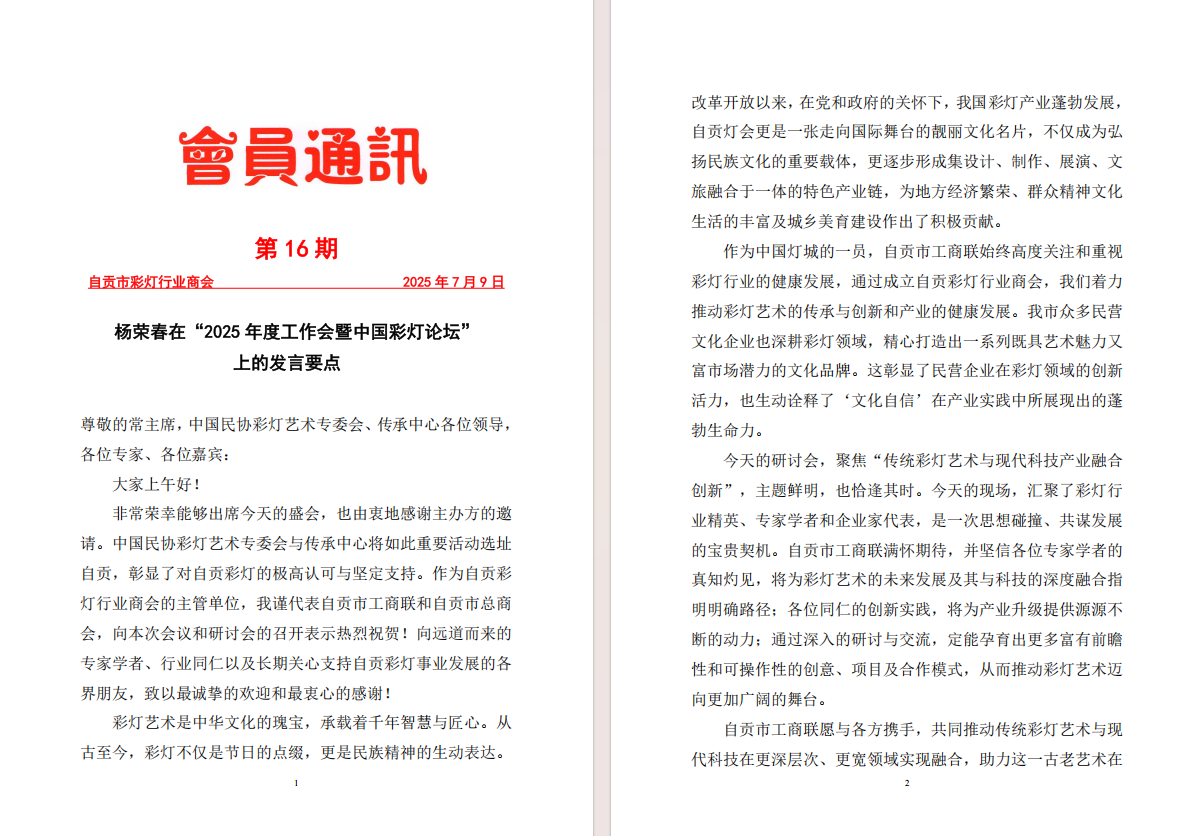 杨荣春在“2025 年度工作会暨中国彩灯论坛” 上的发言要点