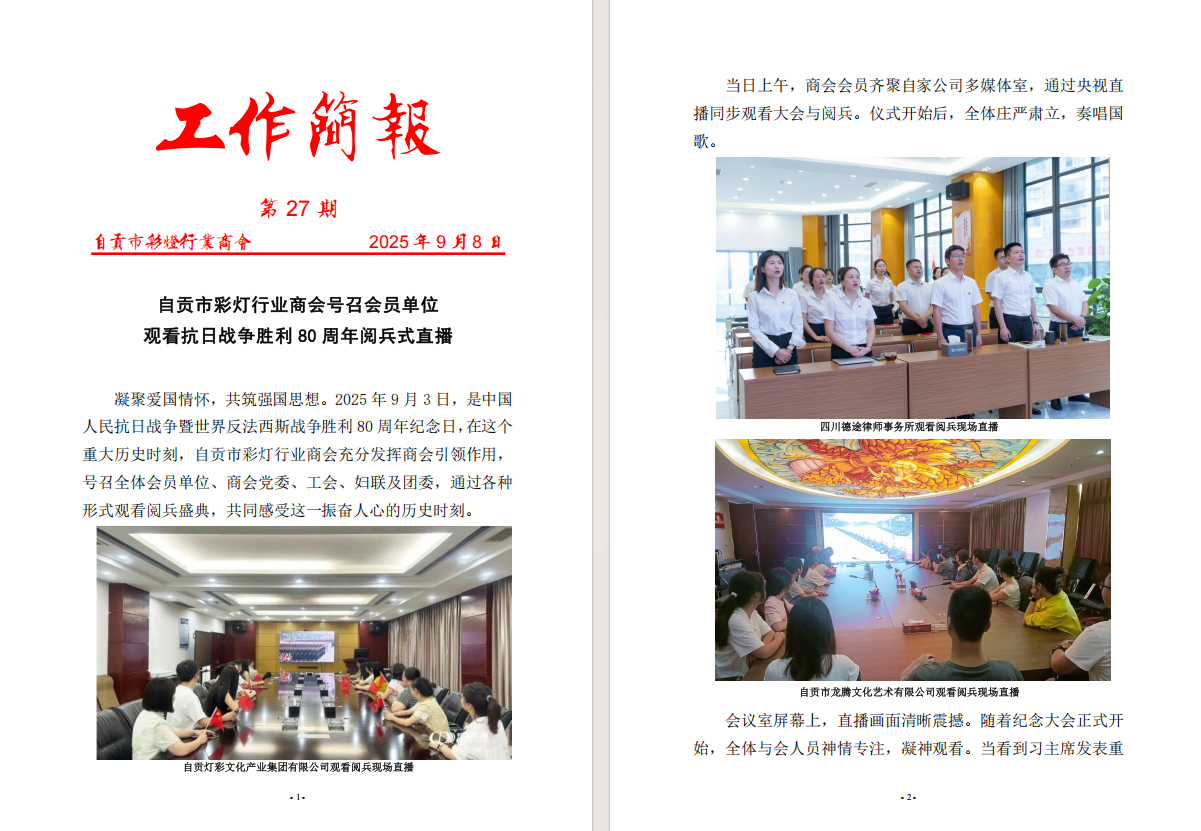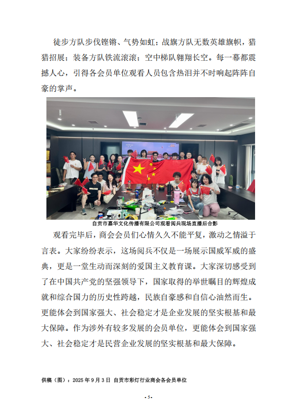 商会号召会员单位观看抗日战争胜利 80 周年阅兵式直播